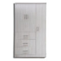Con dimensiones de 104 cm de ancho, 47 cm de profundidad y 190 cm de alto, incluye tres puertas y tres cajones para organización vertical.