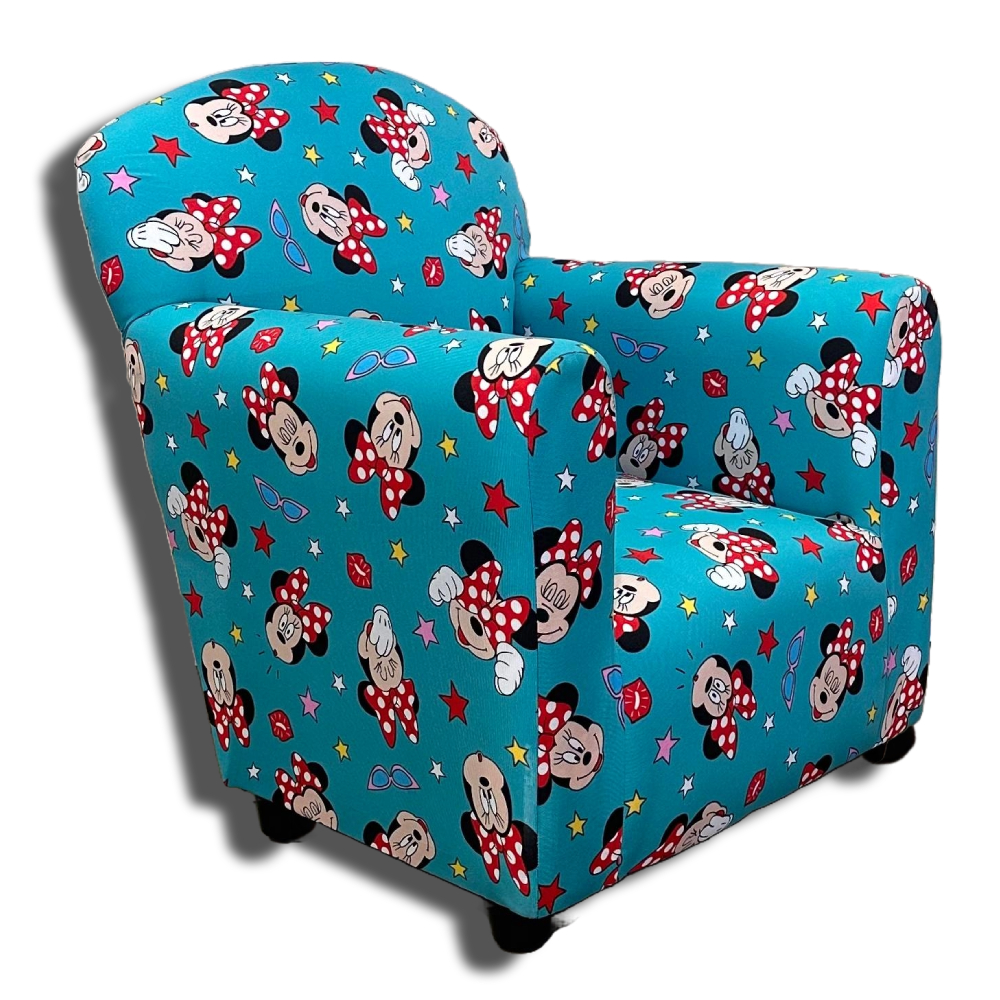 Este encantador sillón infantil es un sueño hecho realidad para las pequeñas fanáticas de Disney. Con un alegre diseño de Minnie Mouse sobre un fondo celeste vibrante, adornado con estrellas y otros elementos divertidos, este sillón aporta un toque de magia y dulzura a cualquier habitación infantil. Es el lugar perfecto para que las niñas se sumerjan en sus historias favoritas, disfruten de una tarde de juegos o simplemente descansen en un asiento cómodo y diseñado a su medida. Su fabricación en tela de alta calidad garantiza durabilidad y resistencia, haciendo de este sillón un mueble funcional y decorativo que llenará de alegría el espacio de tu hija.